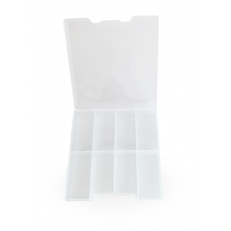 Avec ses 8 compartiments, fini les silicones mélangés dans les sachets . Vous gagnerez du temps dans le choix de vos pads, mais aussi, vous pourrez les protéger après désinfection pour vos prochaines prestations. En plastique semi- transparent recyclable, elle s’utilise aussi pour le stockage des plus petits accessoires comme les Cup colle, Volume drop, Mini goupillon...
